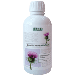 Шампунь-бальзам з реп'яховою олією по 200 мл у флаконі
